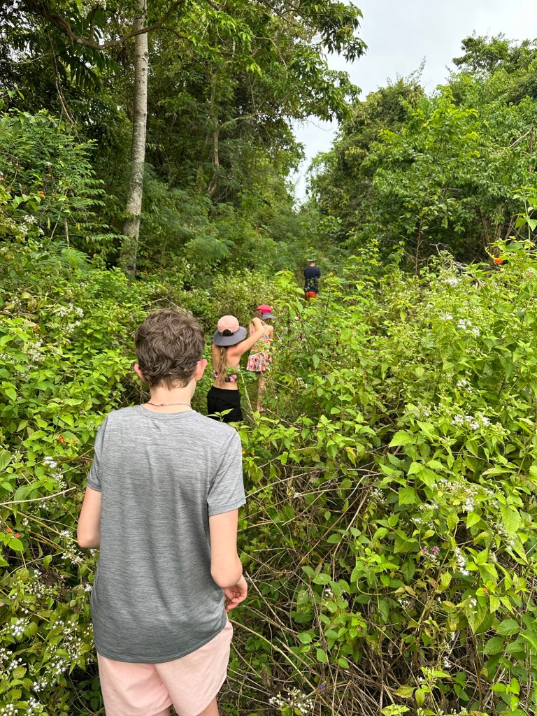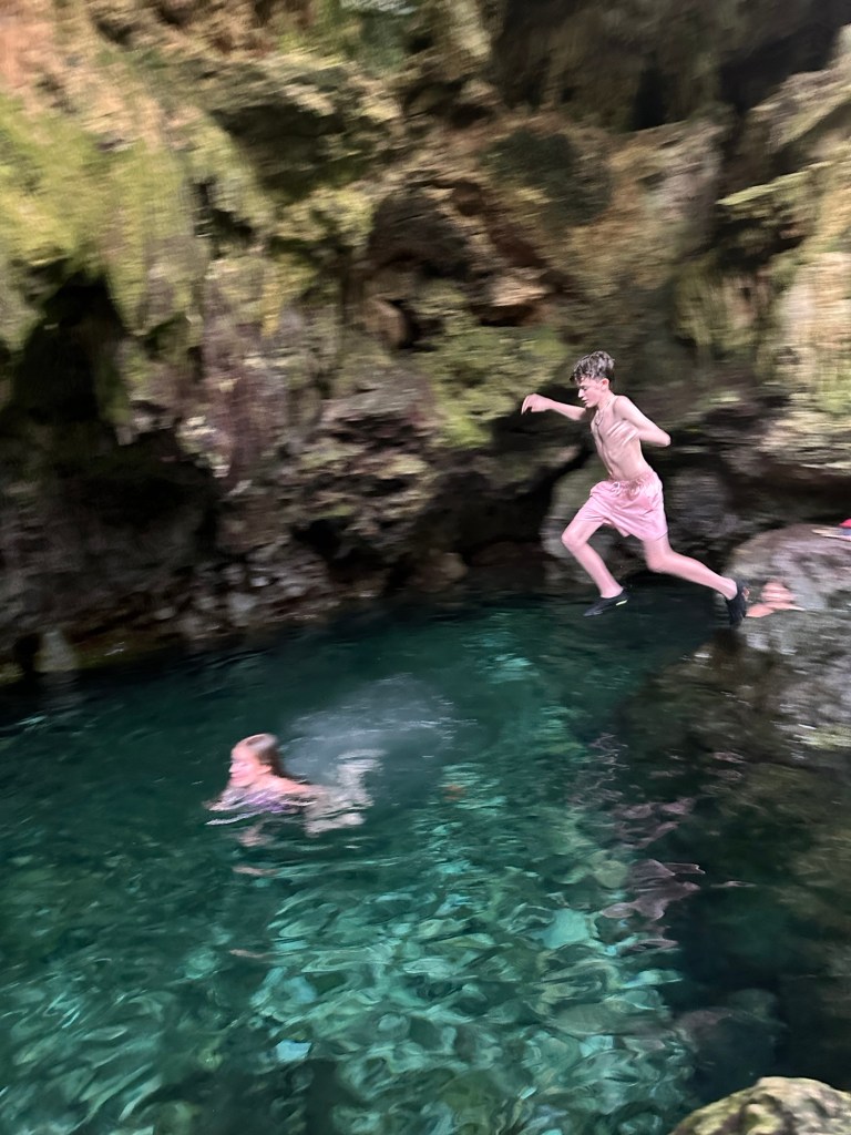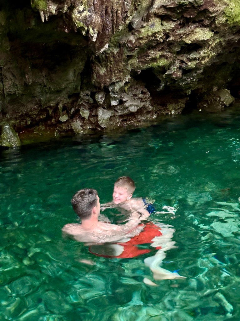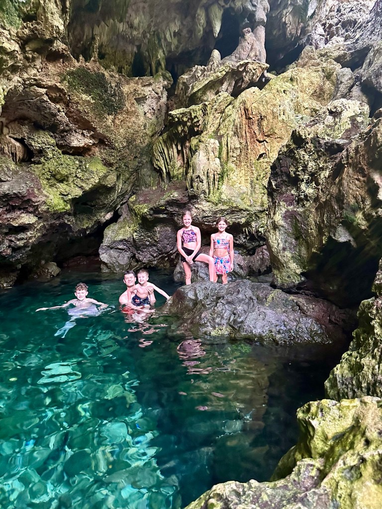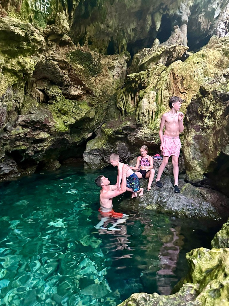 We’ve seen pictures and have been dreaming of swimming in cave pools. As we were looking for the path to one of these hidden beauties near our resort, a concerned local asked where we were going. After a few tries, he understood. Then he said: “Not recommended for tourists, ma’am. No one cleans there. It’s isolated. Be careful!” A warning like that made it feel like a giant, life-threatening adventure. In reality, it was a 5-10 minute walk down a path in the woods/jungle. There was some litter en route, but the pool was pristine.