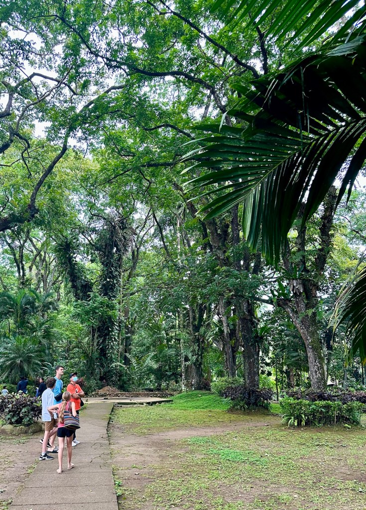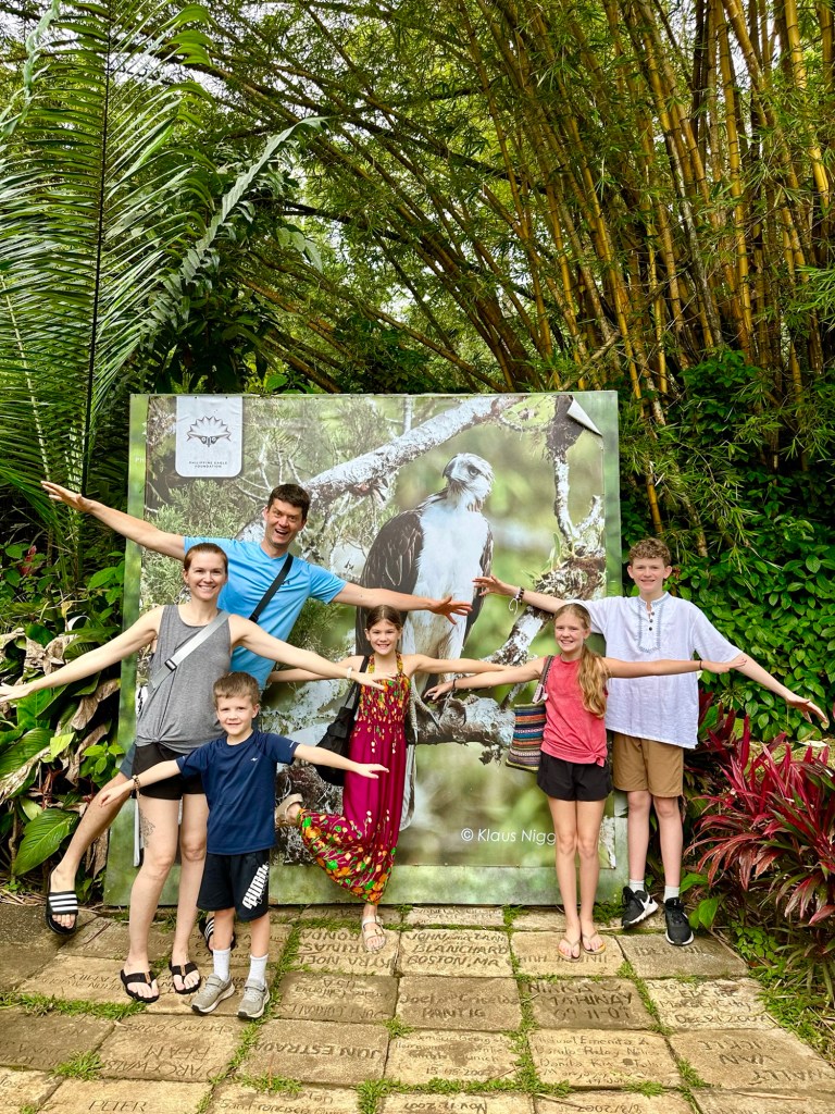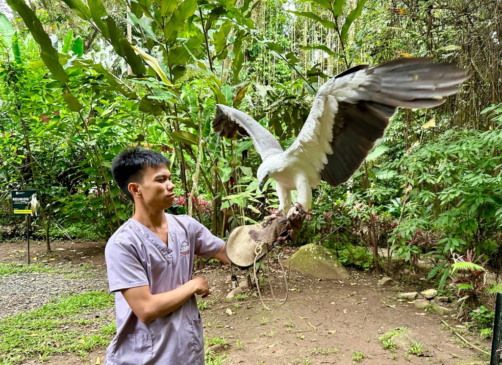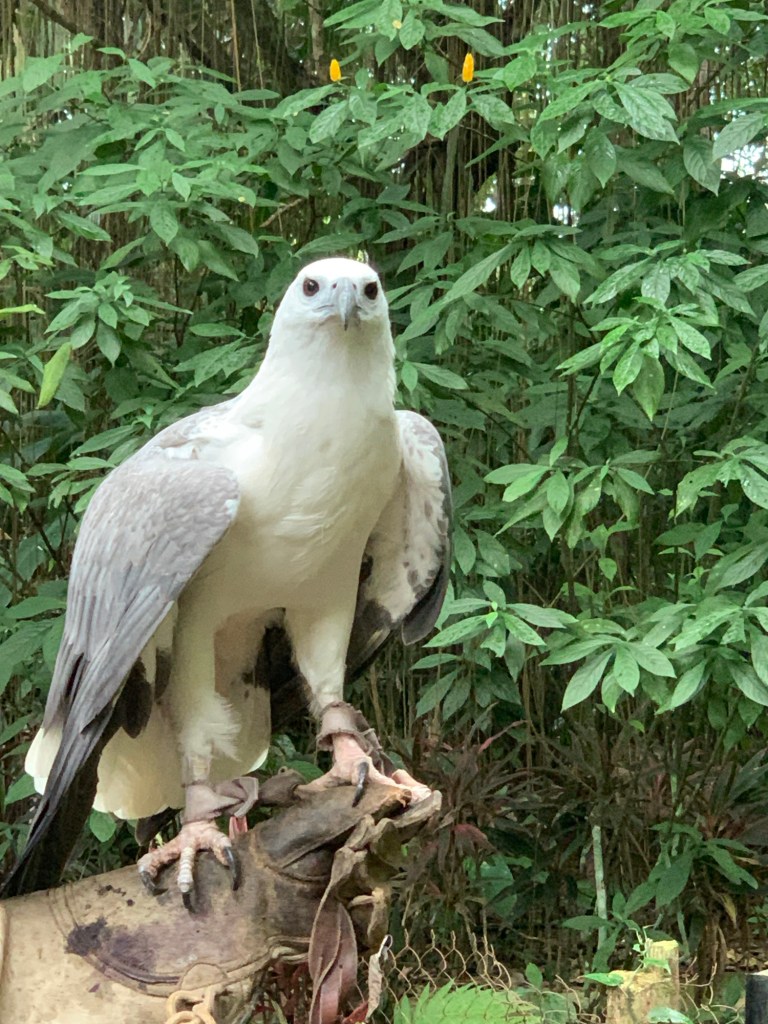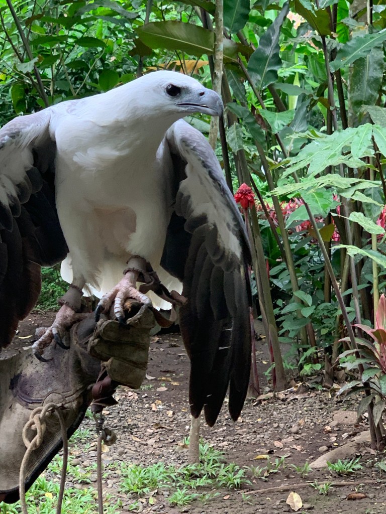 With a 7 foot wingspan, the Philippine Eagle is the biggest eagle in the world. We have been looking forward to seeing this majestic creature for months. Interestingly, we learned that female Philippine Eagles are larger than male eagles. They say males are smaller so they can be more agile hunters in their forest home. We also learned that Philippine Eagles are lifetime monogamous: even if their partner dies, they will not find another mate. They only lay one egg at a time, and that only every 2 years. Unfortunately, to protect the Philippine Eagles from bird flu, their enclosures were far from the foot path. We could see them well in person but without a proper telephoto lens, the pictures didn’t turn out that great (the pictures behind chain link fence are of the Philippine Eagles, the up close shots are of other birds). There were many other interesting birds and LOTS of great trees and plants. Sanctuary is a fitting name name for this place.