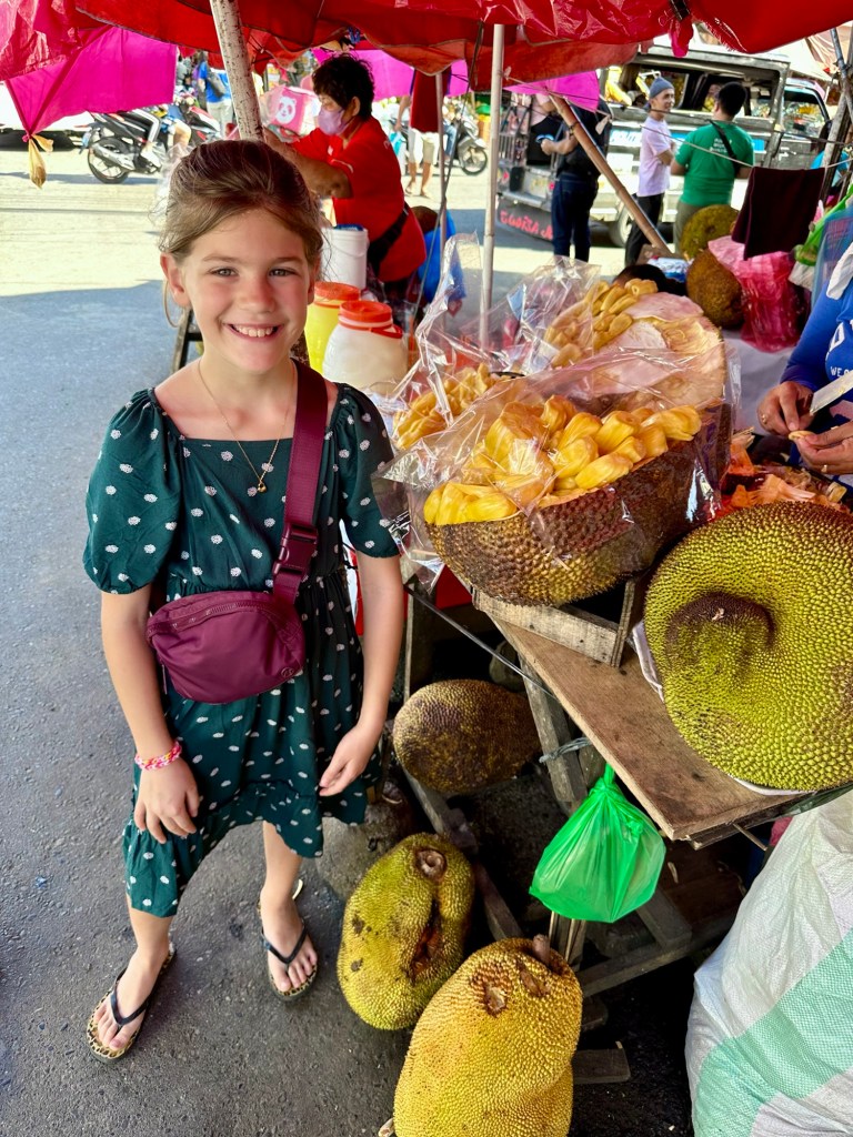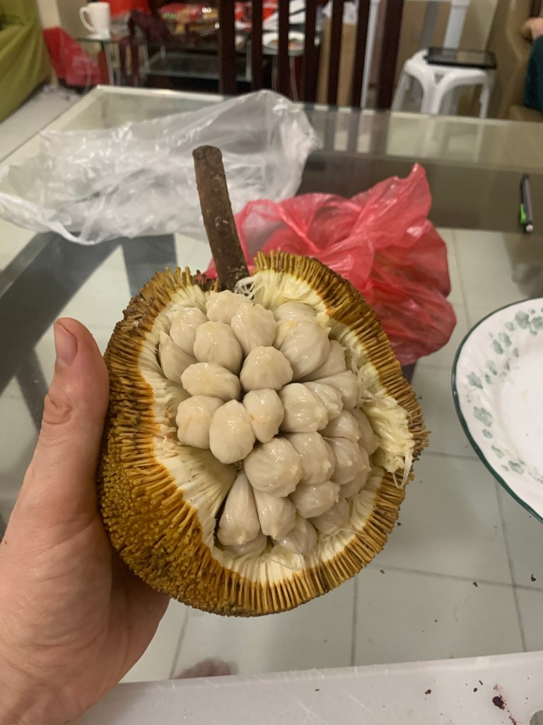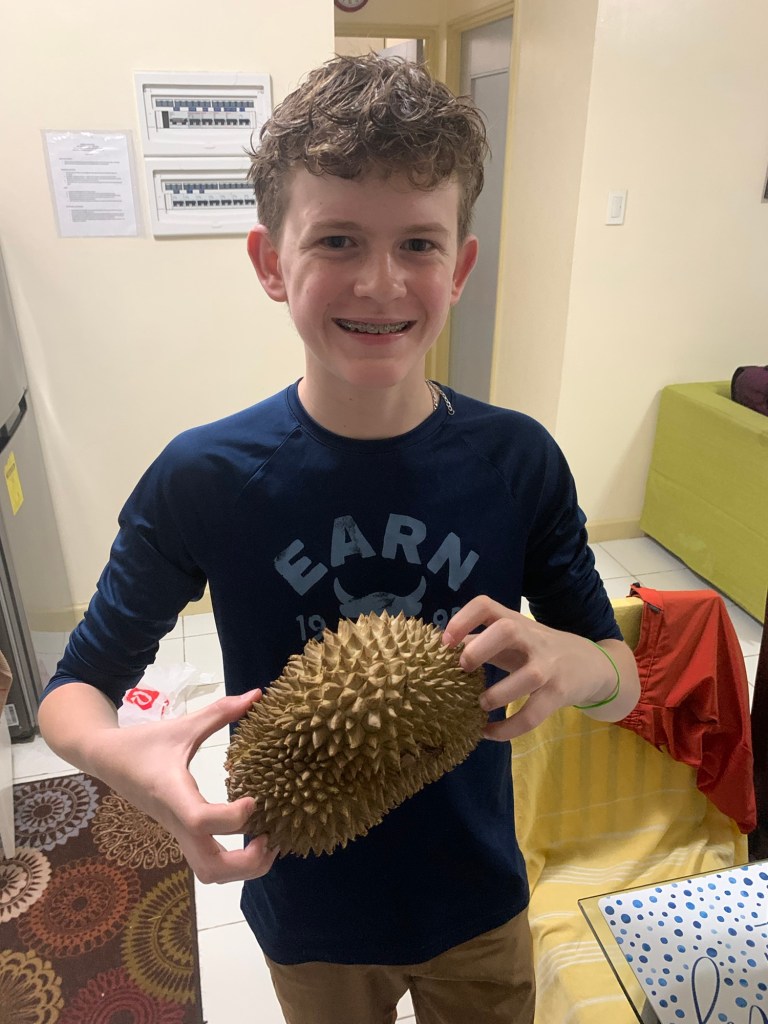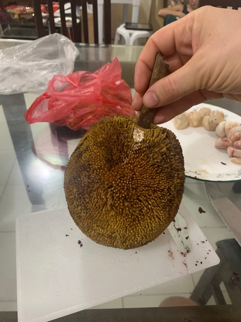 Durian is called the king of fruit in Davao city and has quite the reputation. They say it smells like Hell but tastes like Heaven. Interestingly, it was banned from one of our hotel rooms on account of the smell! Daniel and I tried it and have decided that it’s an acquired taste. The spikes on the outside are hard and sharp – it would make a good weapon. The fruit itself is soft and creamy.