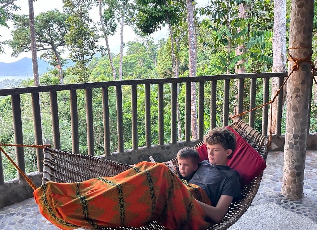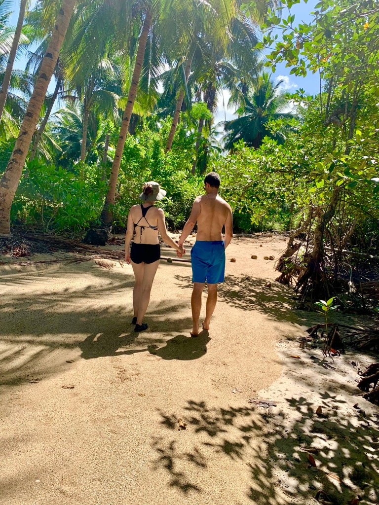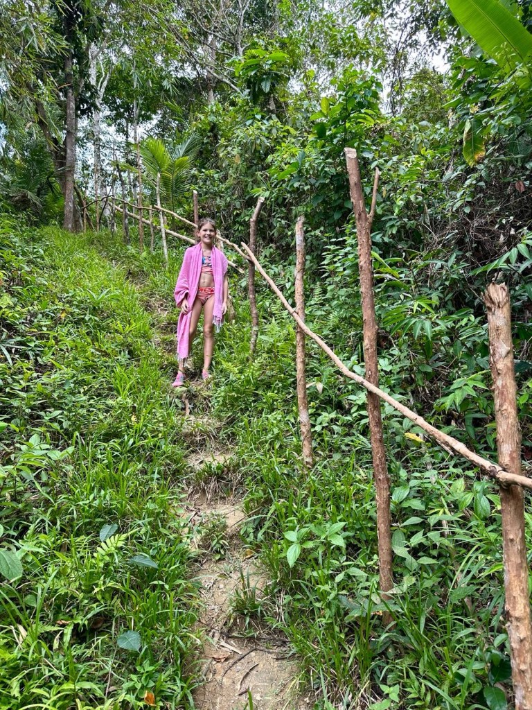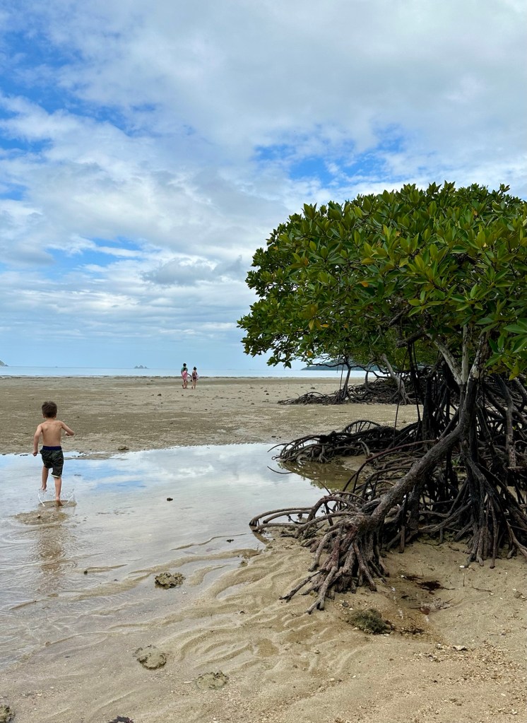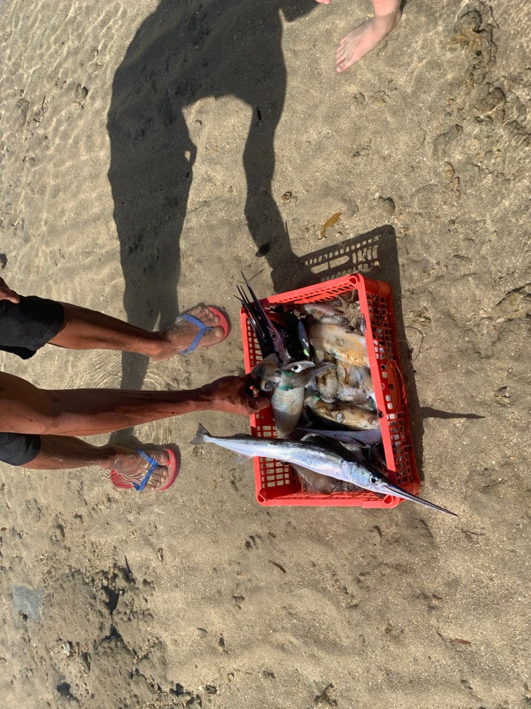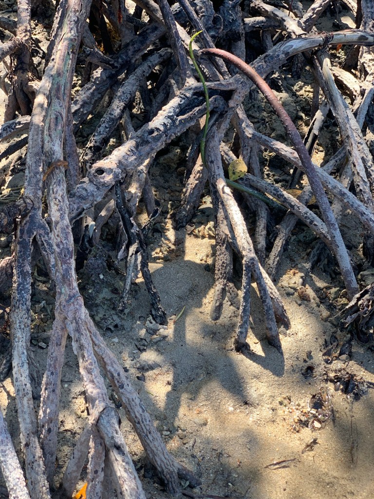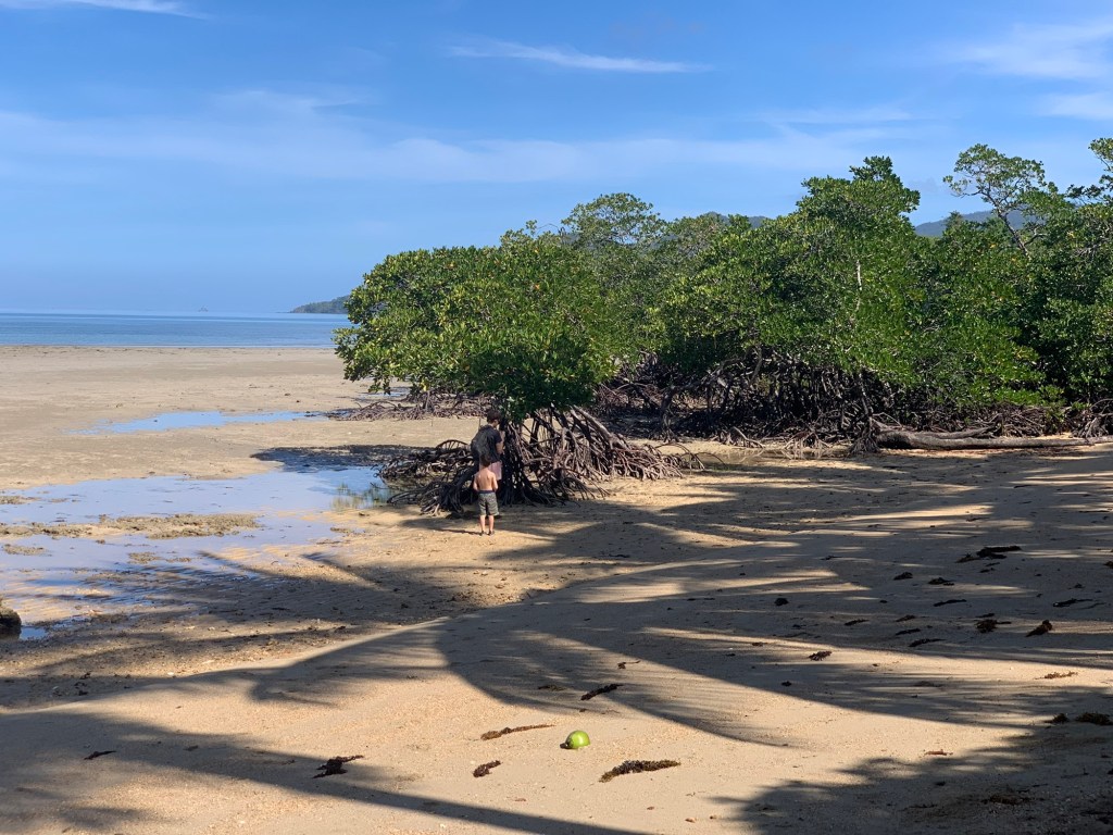 The beach itself was gorgeous of course. The water was warm and shallow for a long way out. We had it to ourselves except for a couple local fishermen who sold us fresh coconuts and were happy to show off their catch of the day. One of these fishermen was particularly friendly and became our guide for a snorkelling experience that I’ll share in another post. The beach also housed a mangrove forrest. Some other guests at Artremaru launched our curiosity into this ecosystem and Daniel subsequently did a great research project and presentation on them. Everyone in the family learnt a lot about mangroves from his presentation.
