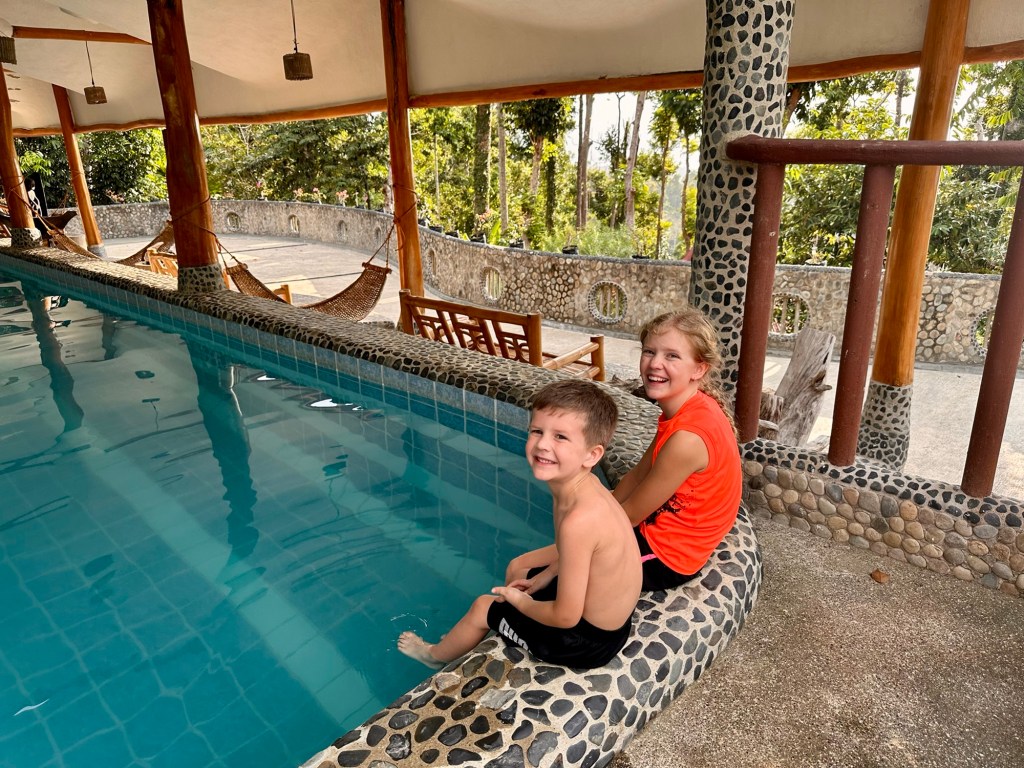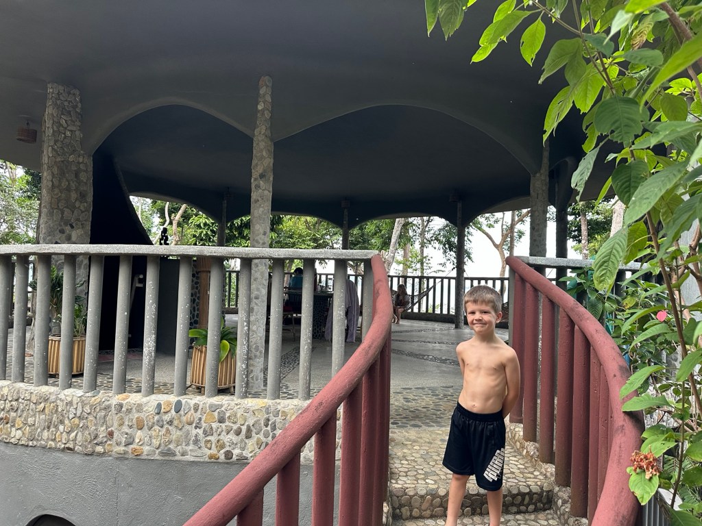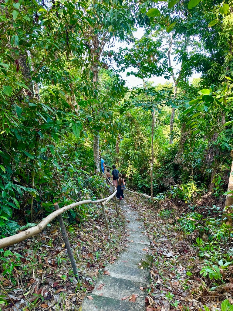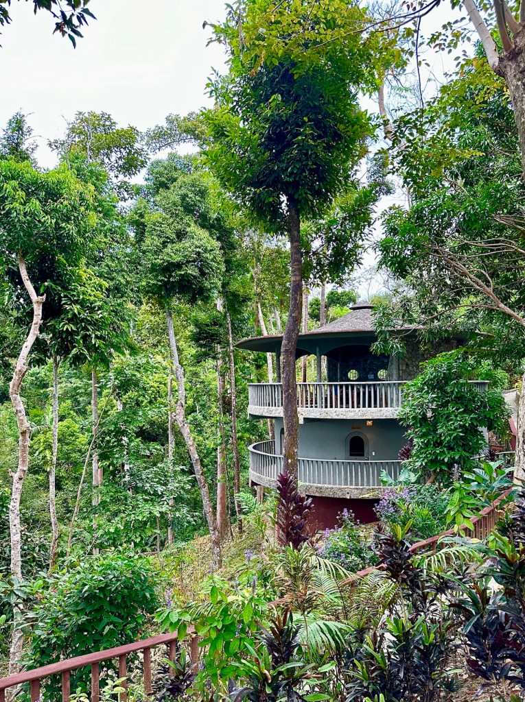 This place is amazing! There is beautiful stonework everywhere, including many mosaics. The winding paths are lined with beautiful foliage. It even has a private beach! They said that the beach was at the end of a twenty minute jungle trail. They did not say how steep the trail was 🙂