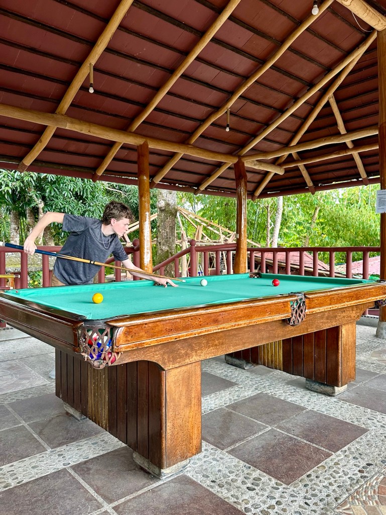 Then our driver picked us up for the one hour ride to the jungle retreat. He had a nice 15 passenger van, similar to the one at the end of our time on Bohol. Before leaving, he handed us some motion sickness bags…Then he drove like he wanted us to use them! It was quite the experience, but we kept the bags unused. After getting our feet back under us, we explored this beautiful oasis, called Artremaru.