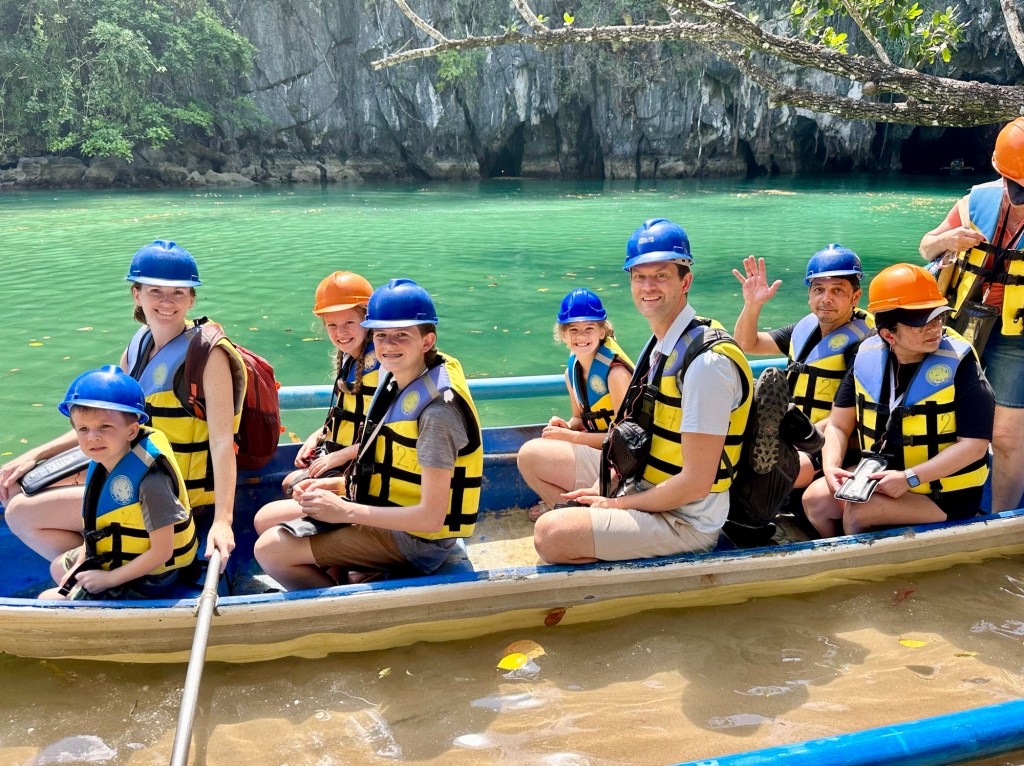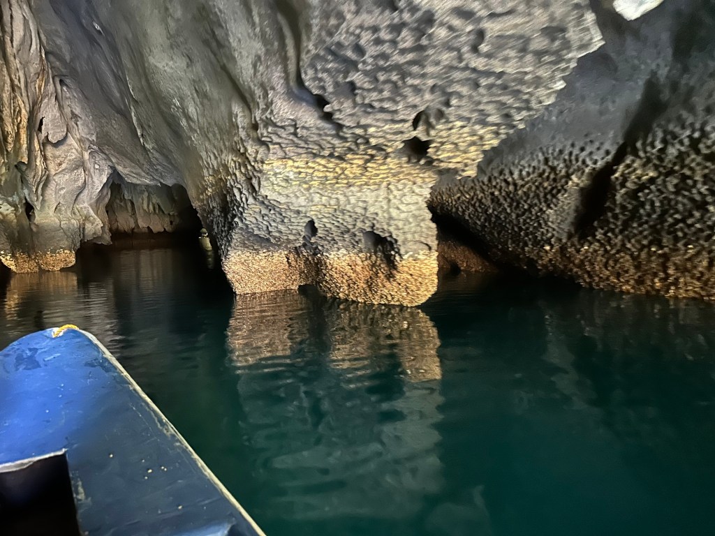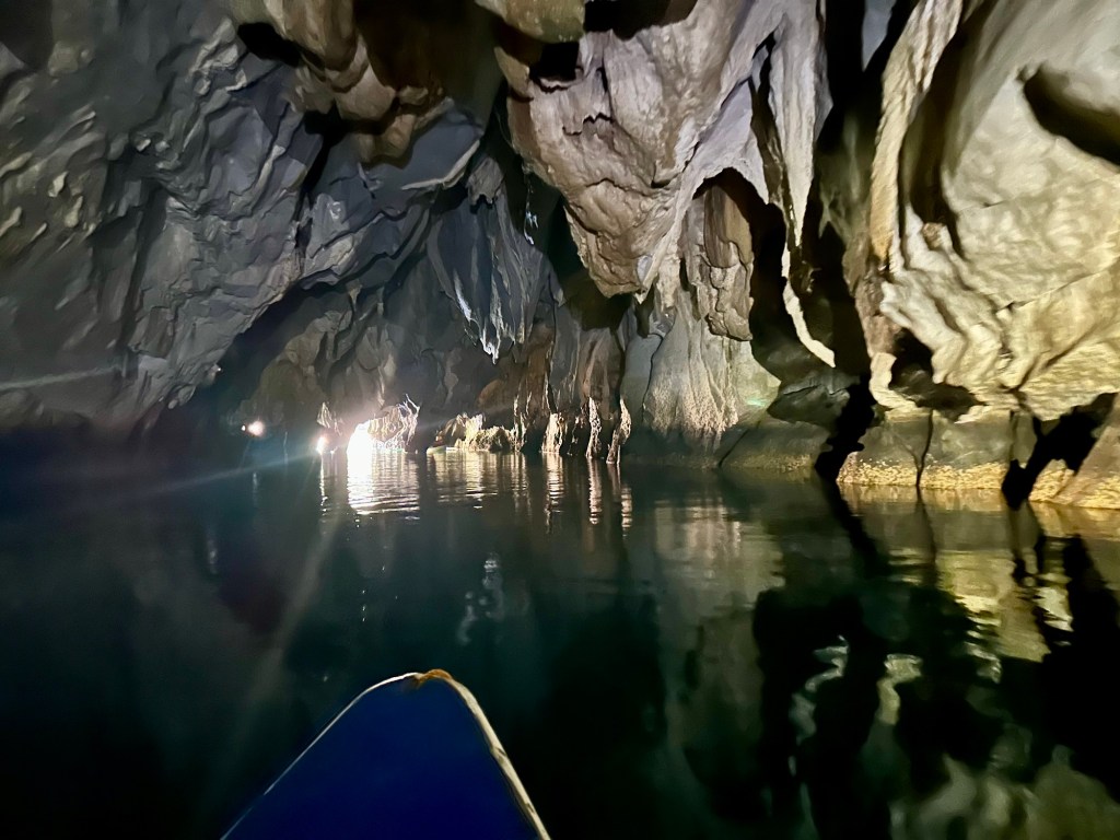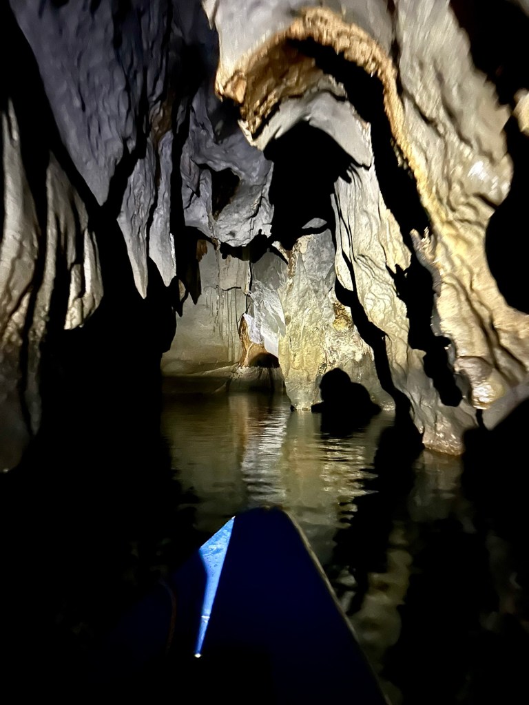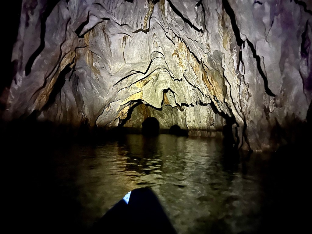 This remarkable river cave is a UNESCO World Heritage Site. Artremaru, with seemingly hundreds of other outfitters, offered a classy package deal that included a van, a driver, a guide, park passes, boat tickets, a buffet lunch, etc. It was a little too polished for our liking, so Leisel flagged down a tuktuk. It turns out this was a local guy going to work, with a “not for hire” sticker on his windshield, but would you be able to say no to a beautiful mother of four who speaks Tagalog? In truth, like most people we’ve met here, he seemed more than happy to inconvenience himself to help us. This trip was an official “bahala na” day. It means “Come what may.” We had heard that you needed to order park permits 48hr in advance, that wait times for boats were several hours if not pre-arranged, that guides were hard to find, etc. So we decided we would go poke around. If we couldn’t make something work, then we could fall back on the polished tour another day. Well, Leisel had us on a boat with permits in hand an hour after the tuktuk dropped us off!