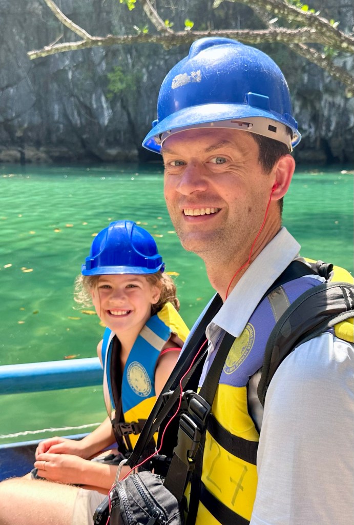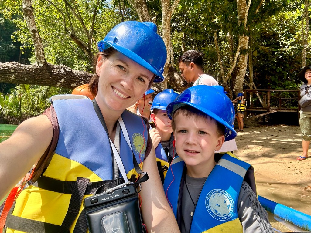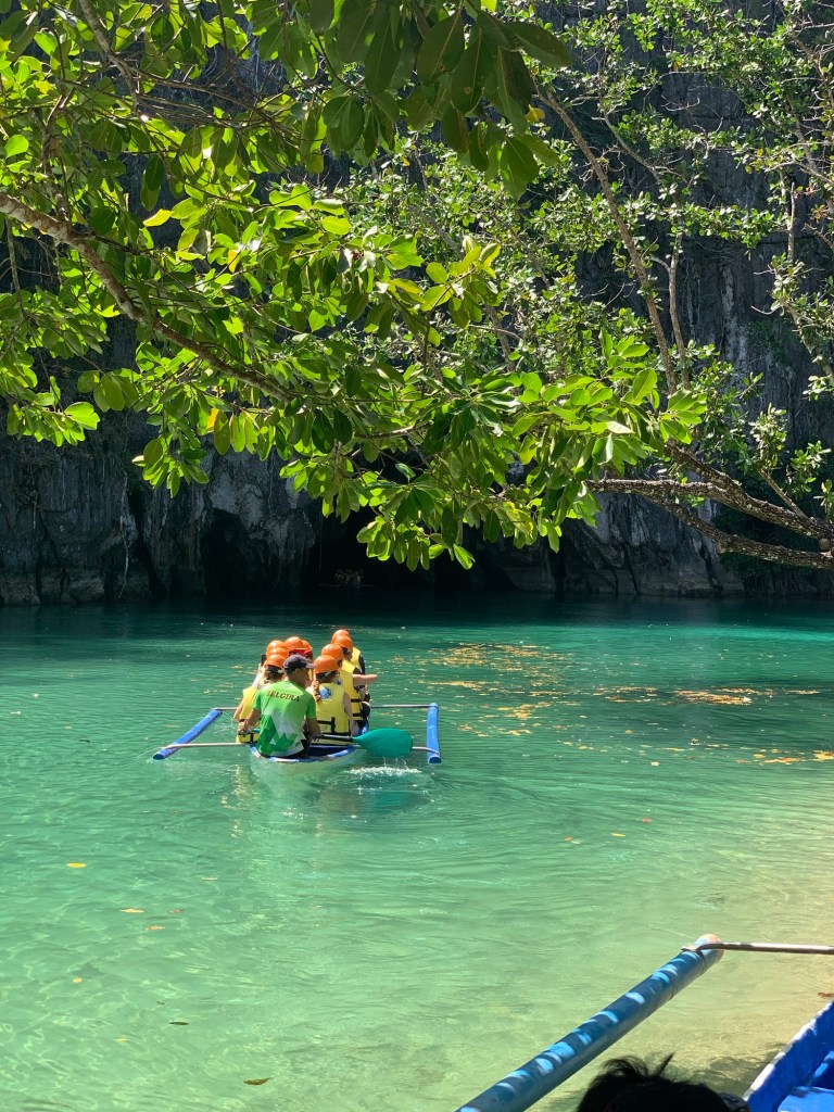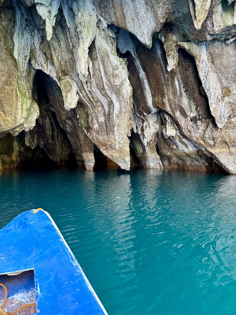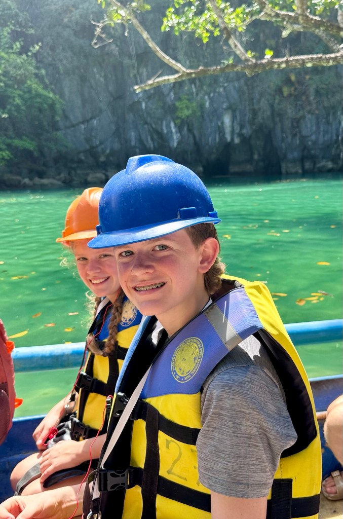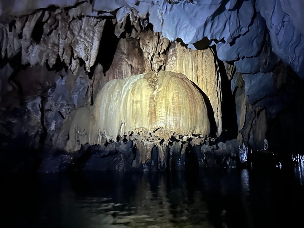 This remarkable river cave is a UNESCO World Heritage Site. Artremaru, with seemingly hundreds of other outfitters, offered a classy package deal that included a van, a driver, a guide, park passes, boat tickets, a buffet lunch, etc. It was a little too polished for our liking, so Leisel flagged down a tuktuk. It turns out this was a local guy going to work, with a “not for hire” sticker on his windshield, but would you be able to say no to a beautiful mother of four who speaks Tagalog? In truth, like most people we’ve met here, he seemed more than happy to inconvenience himself to help us. This trip was an official “bahala na” day. It means “Come what may.” We had heard that you needed to order park permits 48hr in advance, that wait times for boats were several hours if not pre-arranged, that guides were hard to find, etc. So we decided we would go poke around. If we couldn’t make something work, then we could fall back on the polished tour another day. Well, Leisel had us on a boat with permits in hand an hour after the tuktuk dropped us off!