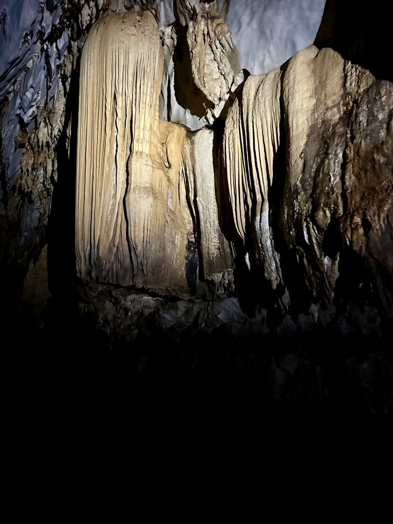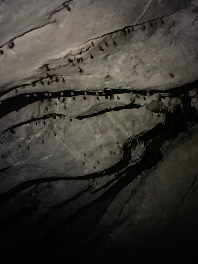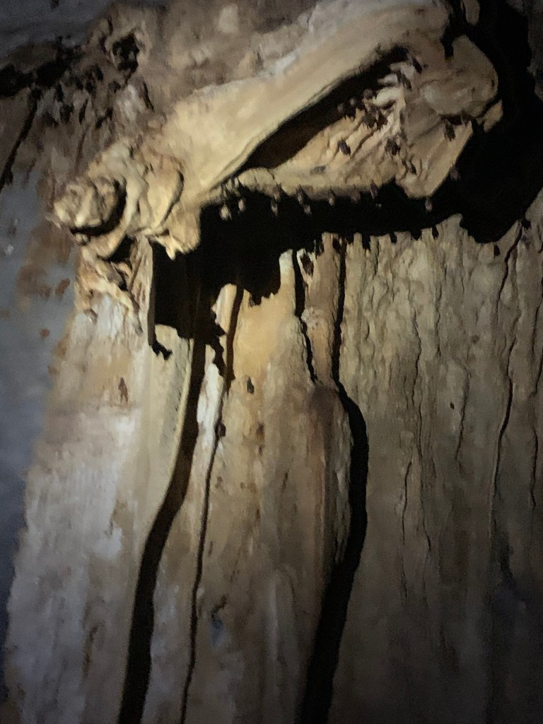 The entrance to the cave, though pretty, was fairly unassuming and blended in well with its surroundings. I never would have guessed it led to such beauty inside. There were narrow passages between open areas with huge cathedral ceilings. Stalactites and stalagmites were plentiful. Like cloud-watching, you could see all kinds of creatures and statues in these formations if you looked closely enough, and our guide pointed out many of them. We saw lots of bats hanging, and were sure to keep our mouths closed as we admired them hanging up there.